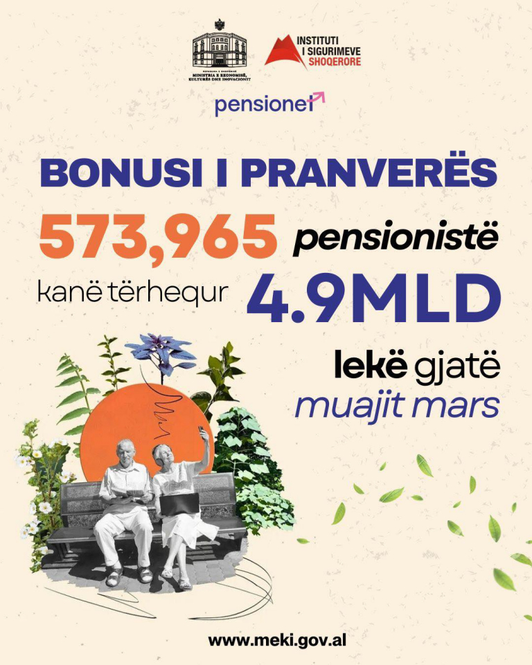 573,965 pensionistë kanë tërhequr 4.9MLD lekë gjatë muajit mars! Bonusi mund të tërhiqet deri më 30 Shtator 2025, pranë çdo pike të Postës…