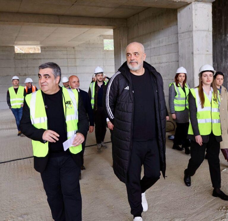 Ministri Blendi Gonxhja së bashku me kryeministrin Edi Rama dhe ekipin e Ministrisë së Ekonomisë, Kulturës dhe Inovacionit në kantierin…
