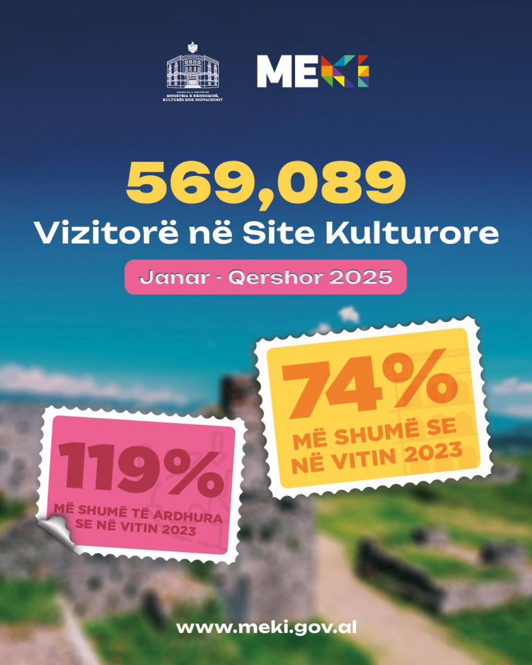 Sitet tona kulturore kanë mirëpritur plot 569,089 vizitorë gjatë Janar-Qershor 2025! Një rritje prej 74% krahasuar me 2023! Top 5…