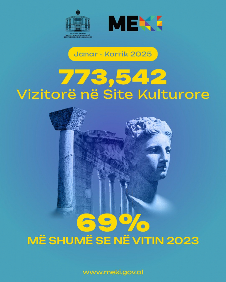 773,542 vizitorë në sitet tona kulturore gjatë Janar–Korrik 2025, 69% më shumë se në vitin 2023!
