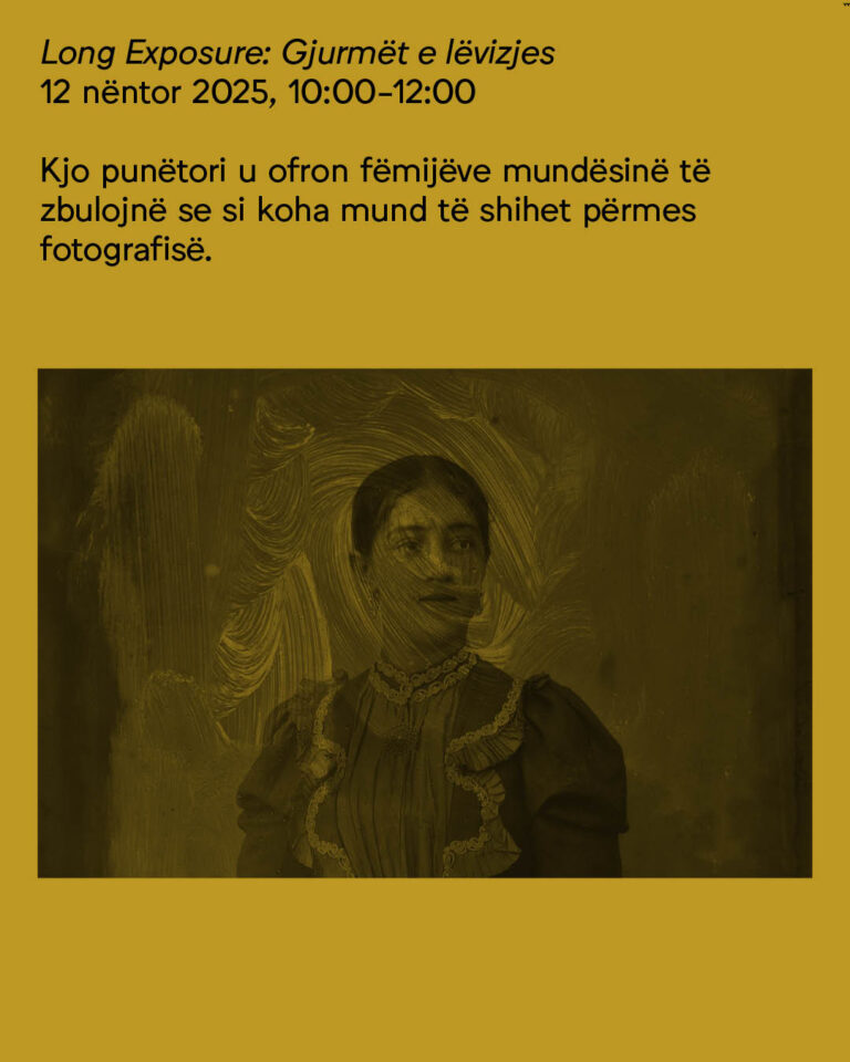 12 Nentor, Ora 10:00-12:00 Kjo punëtori u ofron fëmijëve mundësinë të zbulojnë se si koha mund të shihet përmes fotografisë.…