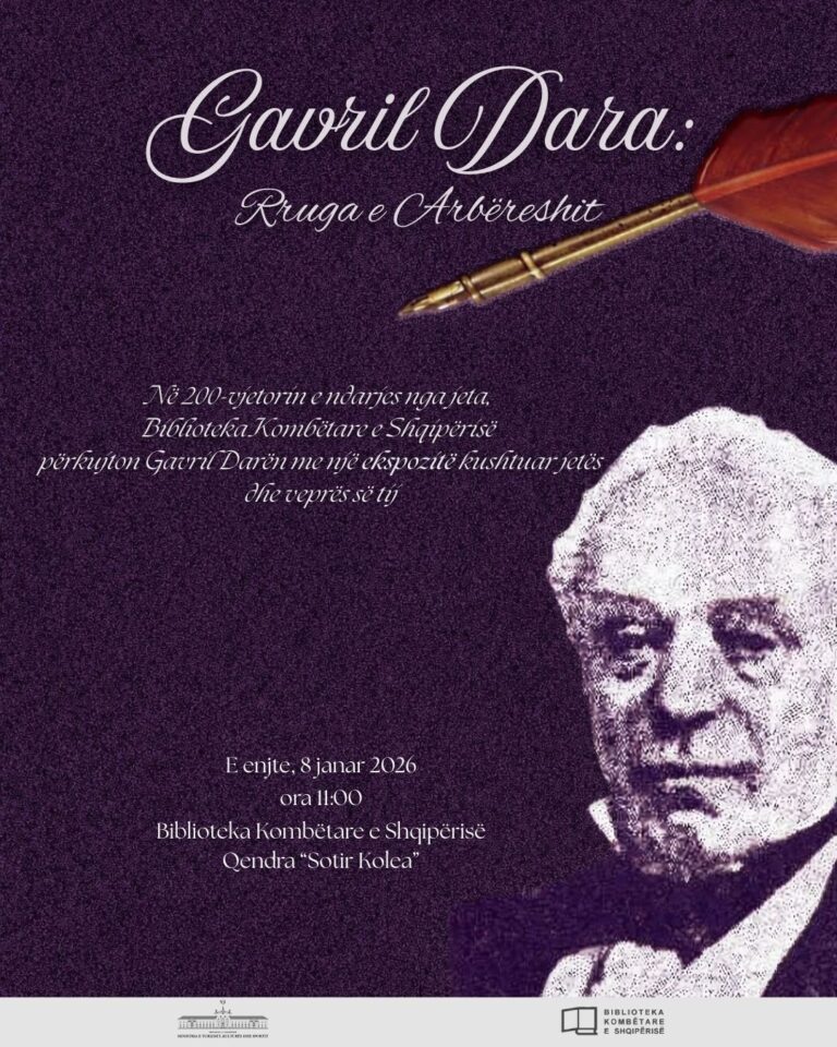 8 Janar, Ora 11:00 Në përkujtim të 200-vjetorit të vdekjes, Biblioteka Kombëtare e Shqipërisë përkujton arbëreshin e mirënjohur Gavril Dara,…