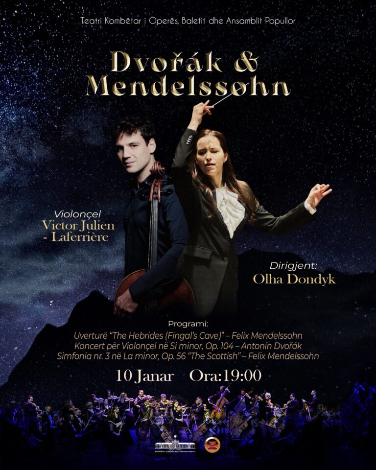 Koncert SimfonikFelix MENDELSSOHN, Antonín DVOŘÁK Dirigjent: Olha DondykSolist në violoncel: Victor Julien-Lafarrière