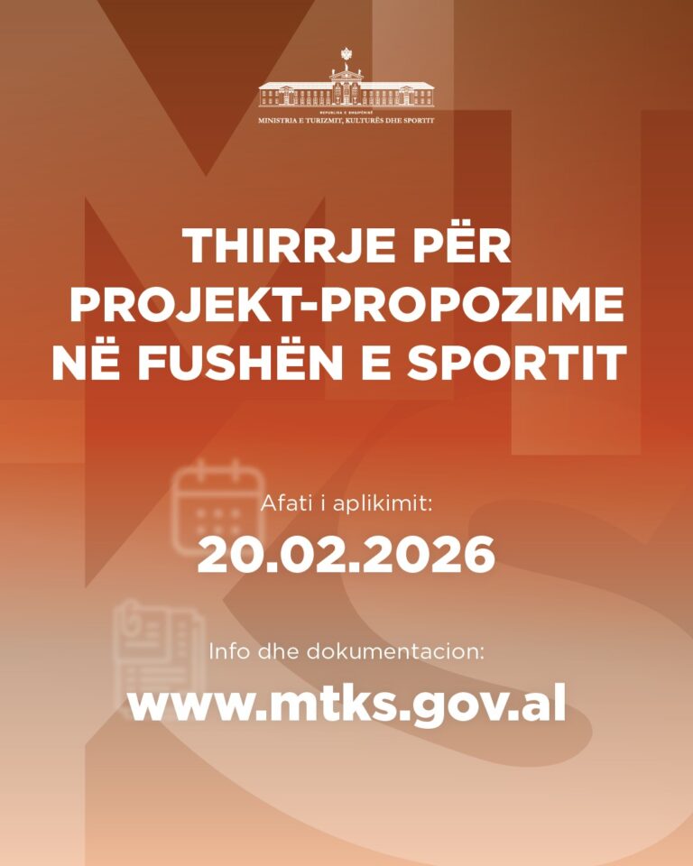 Ministria e Turizmit, Kulturës dhe Sportit hap thirrjen për aplikime për projekte në fushën e sportit, në mbështetje të propozimeve të…