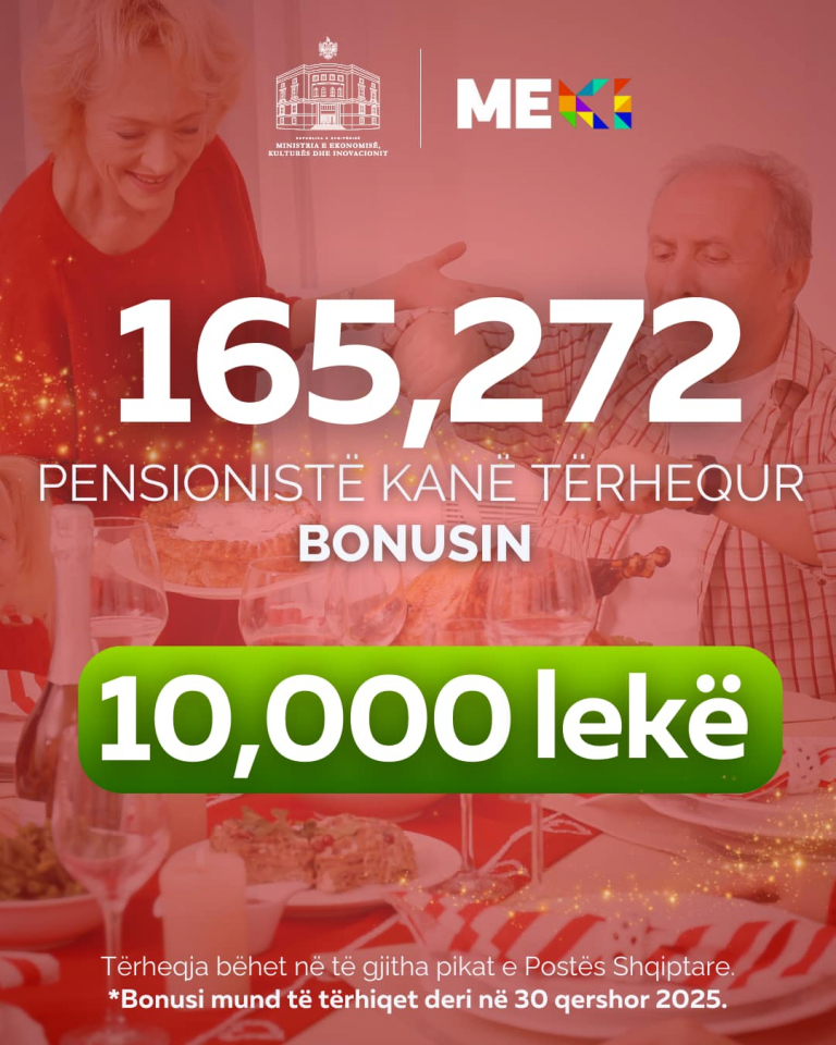 – 165,272 pensionistë, që kanë pension mbi 20,000 lekë, kanë tërhequr bonusin prej 10,000 lekë.