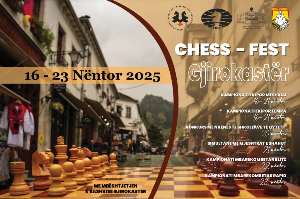 📍Në Festivalin e Shahut Gjirokastra 2025, marrin pjesë rreth 200 shahistë nga Shqipëria, Kosova, Mali i Zi dhe Maqedonia e Veriut.