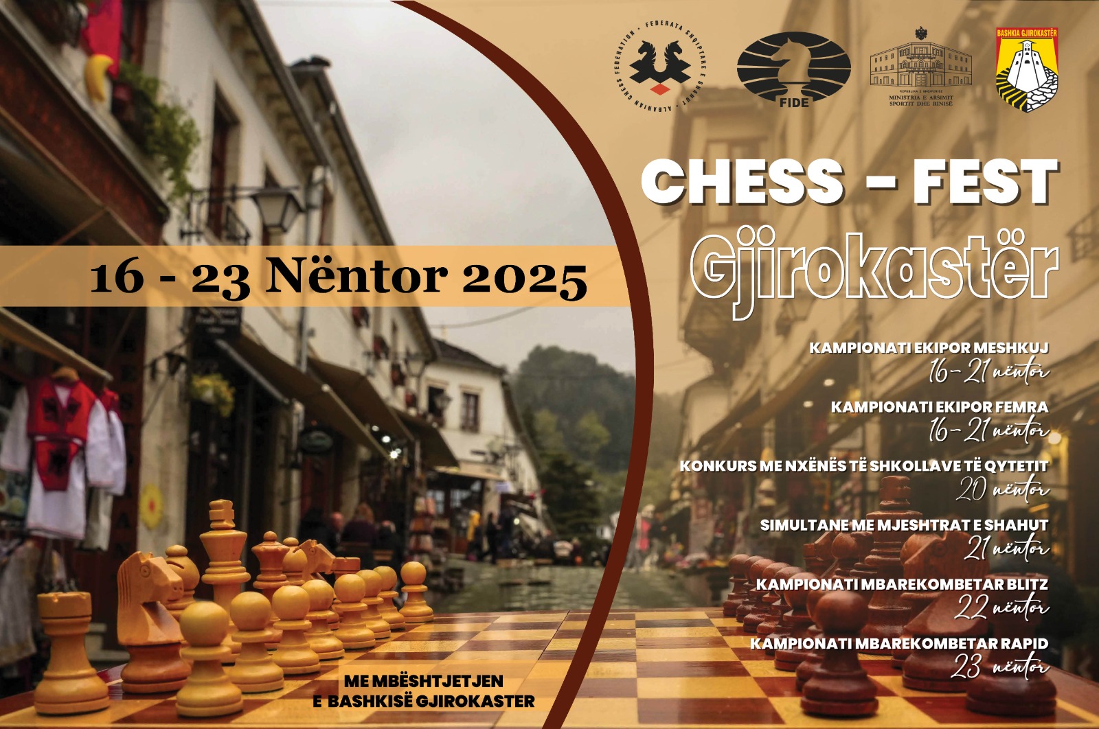 📍Qyteti i gurtë është kthyer këtë javë, në qendrën mbarëkombëtare të shahut. Festivali i Shahut Gjirokastra 2025, – një ngjarje që po bashkon shahistë nga Shqipëria, Kosova dhe vende të tjera të rajonit – organizohet nga Federata Shqiptare e Shahut