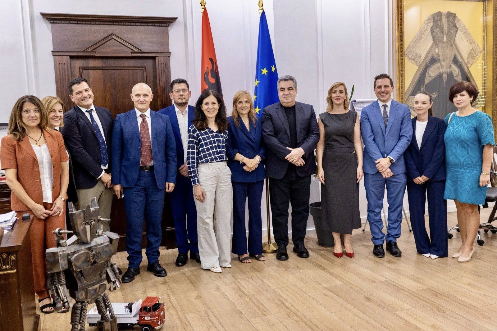 Së bashku me Znj. Valeria Vittimberga, Drejtoreshë e Përgjithshme e Institutit Kombëtar të Sigurimeve Shoqërore në Itali dhe me përfaqësues të ambasadës Italiane në Shqipëri, zhvilluam një takim për të ndjekur nga afër hapat e parë të zbatimit të kësaj marrëveshjeje historike, që synon garantimin e të drejtave të punëmarrësve shqiptarë dhe italianë që kanë kontribuar në të dy vendet.
