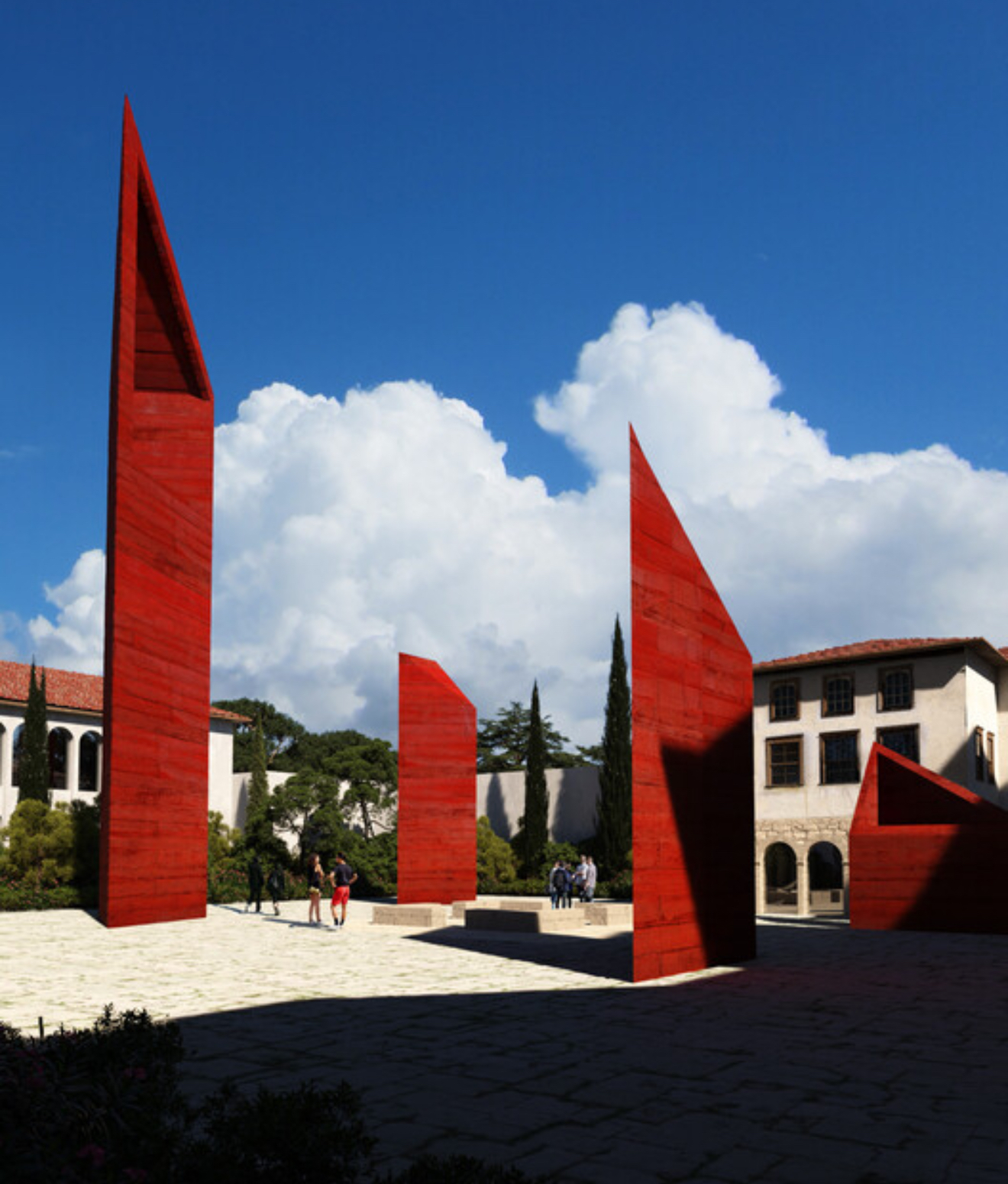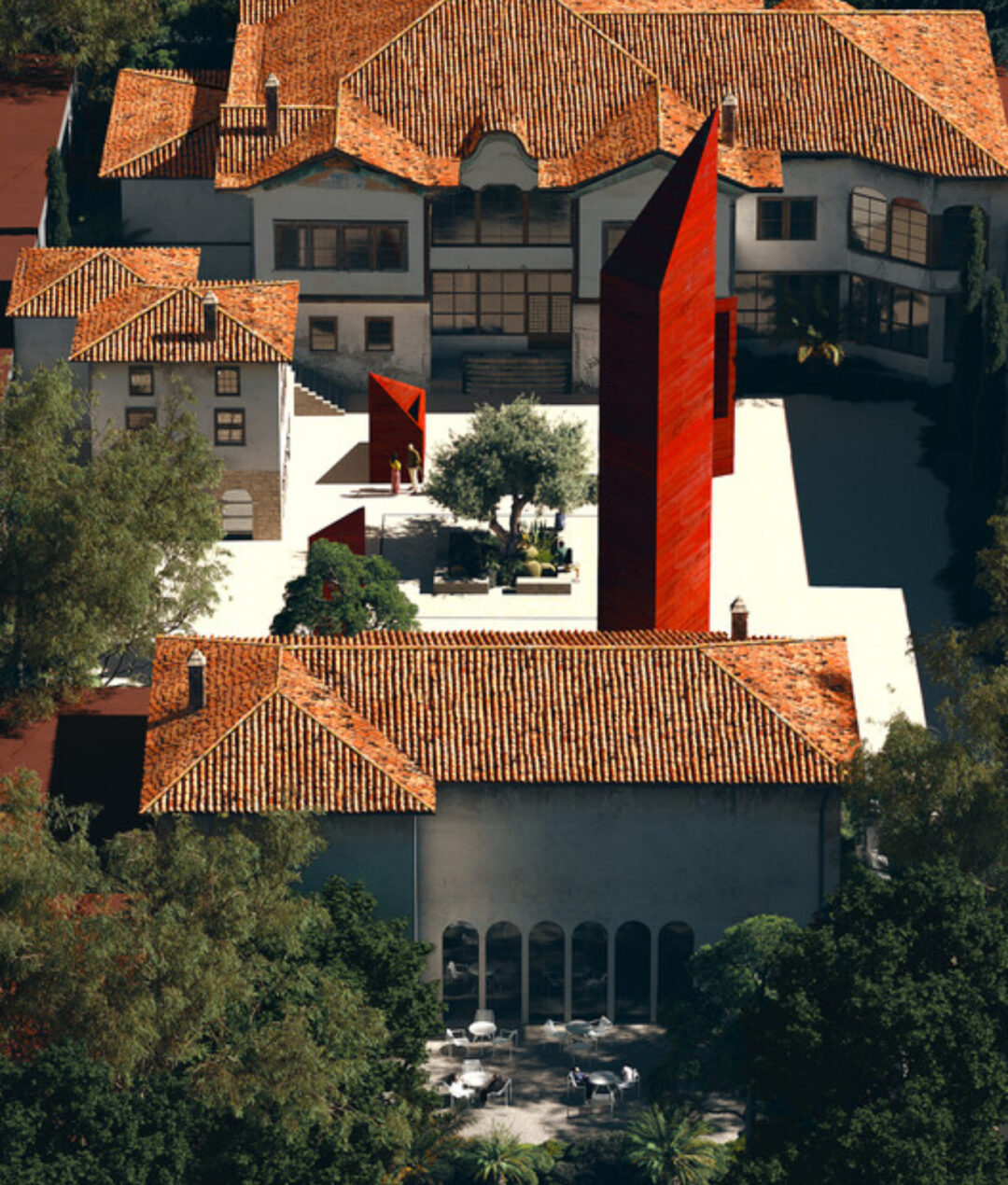 Oborri i kompleksit do të shndërrohet në një shenjë të dukshme mikpritjeje. Monolitët e kuq që do të ngrihen në hapësirën e jashtme do të jenë si simbole të kujtesës dhe si fenerë që thërrasin vizitorët nga qyteti përreth, duke krijuar një pikë takimi mes trashëgimisë dhe modernitetit.