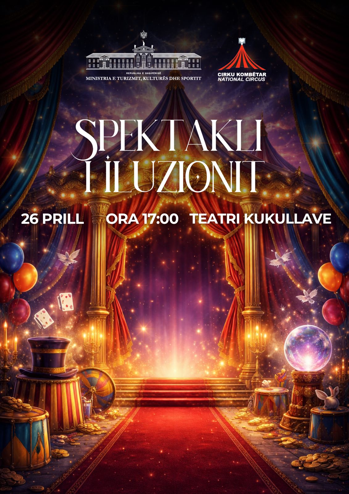 Shfaqje repertori e formuluar me numra akrobatik te profileve te Kllounates, Akrobacise, Ekuilibrit, Ajrit, Zhonglerimit, Prestigjaturës dhe Kafsheve, për të sjellë larmi dhe magji në skenën e Cirkut