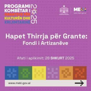 “Thirrje & Grante për Kulturën” sjell informacion mbi programet kombëtare dhe ndërkombëtare të financimit për artin, kulturën, trashëgiminë dhe industrinë kreative. Këtu gjenden thirrjet e hapura, kriteret dhe udhëzimet për aplikim, duke ofruar një referencë për artistë, organizata dhe institucione që kërkojnë mbështetje për projektet e tyre kulturore.