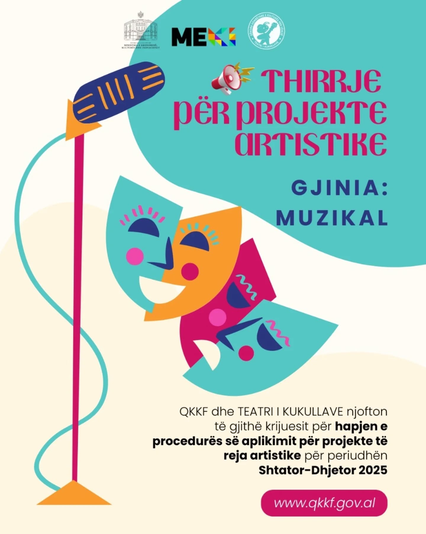QKKF dhe TEATRI i KUKULLAVE njofton të gjithë krijuesit për hapjen e procedurës së aplikimit për projekte të reja artistike për periudhën Shtator-Dhjetor 2025.